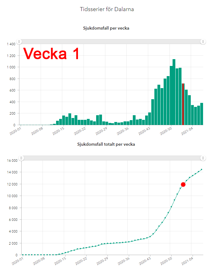 Läget i Dalarna: Coronadödstalen minskat med 95% sen December