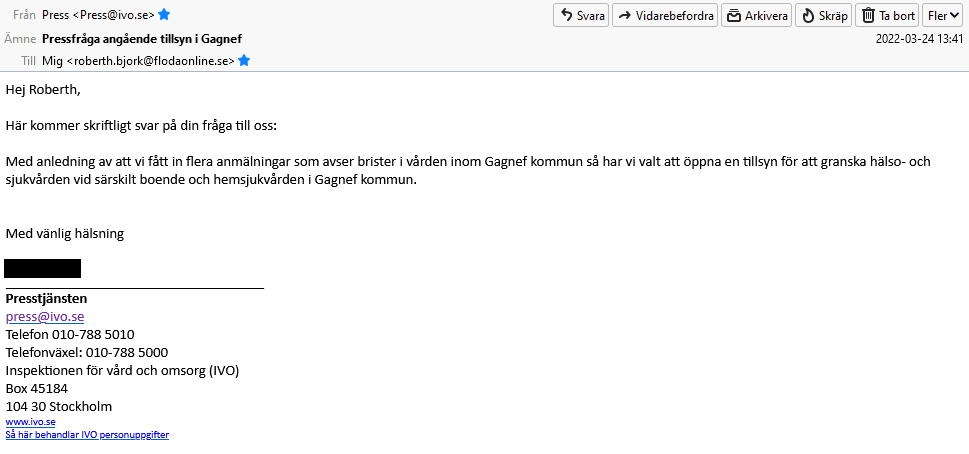 Man nämner som sagt inte att man är under IVO-tillsyn, något vi rapporterade om den 28 mars. Däremot nämner man och till nästan överdrift beskriver den så kallade felaktiga IVO-anmälan som skickats in. Det intressanta är att förutom att själva inskickningen var felaktig, så nämner man inget om att anmälans innehåll skulle vara felaktigt utan fokuset ligger på att bara kommunen själva kan anmäla (läs rapporten noga). Det här är något vi på NDT redan vänt och vridit på, så vi är välinformerade på detta ämne. Vi frågade Socialnämndens ordförande om följande ”Slutligen säger ni att Lex Maria-anmälan var felaktig, menas med det att ni utrett den och pratat med anmälaren för att reda upp frågetecken? För både jag och IVO verkar tycka att frågetecken kvarstår”. Precis så, frågetecken kvarstår och de verkar inte minska med tiden. Allra minst när man heller inte erkänner till kommunens högsta beslutande församling att man under en sådan generell tillsyn som man nu verkar vara.